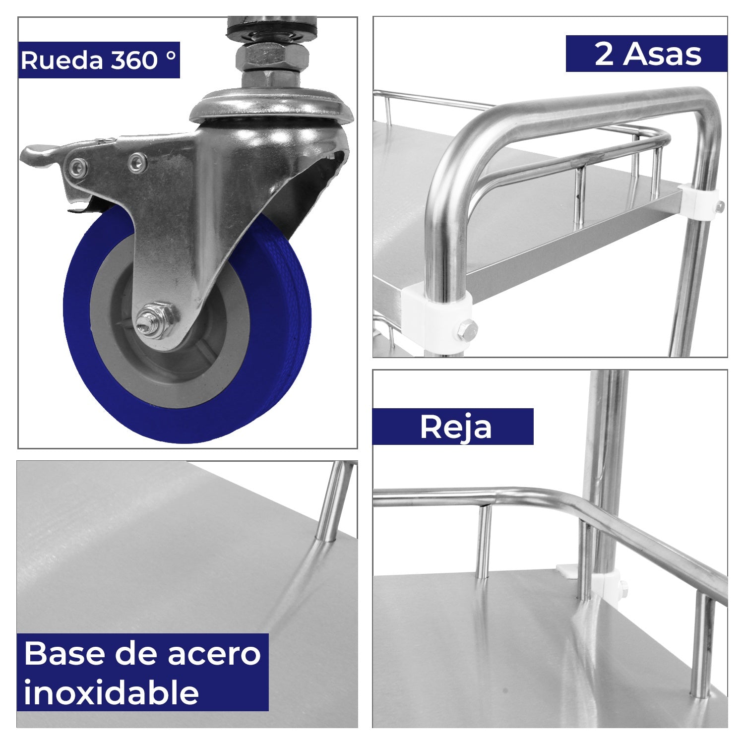 Mesa Auxiliar Multiusos Estetica Spa Barberia 2 Charolas Acero Inoxidable